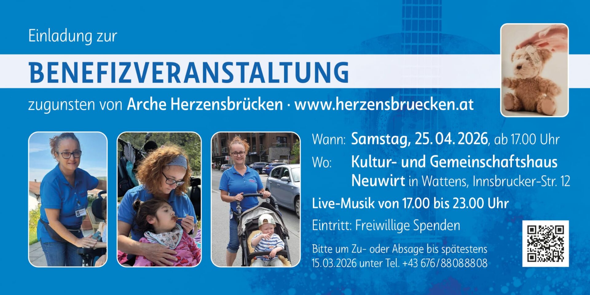 Am 25. April gibt es eine Benefizveranstaltung zugunsten der Arche Herzensbrücken – mit Speis, Trank, Tanz und Livemusik von verschiedenen Bands und Musiker:innen aus der Region. Der Reinerlös kommt geht zur Gänze an die Arche Herzensbrücken.